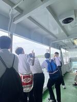フェリーの移動中には潮風にあたりながら「はい、ポーズ😁」